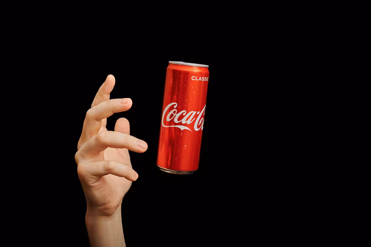 A classic Coca-Cola can photographed against a deep black background — iconic, bold, and instantly recognizable. This simple composition celebrates the global symbol of refreshment, nostalgia, and pop culture in its purest form.