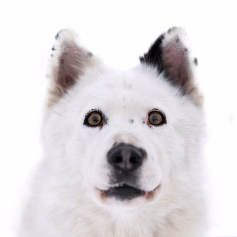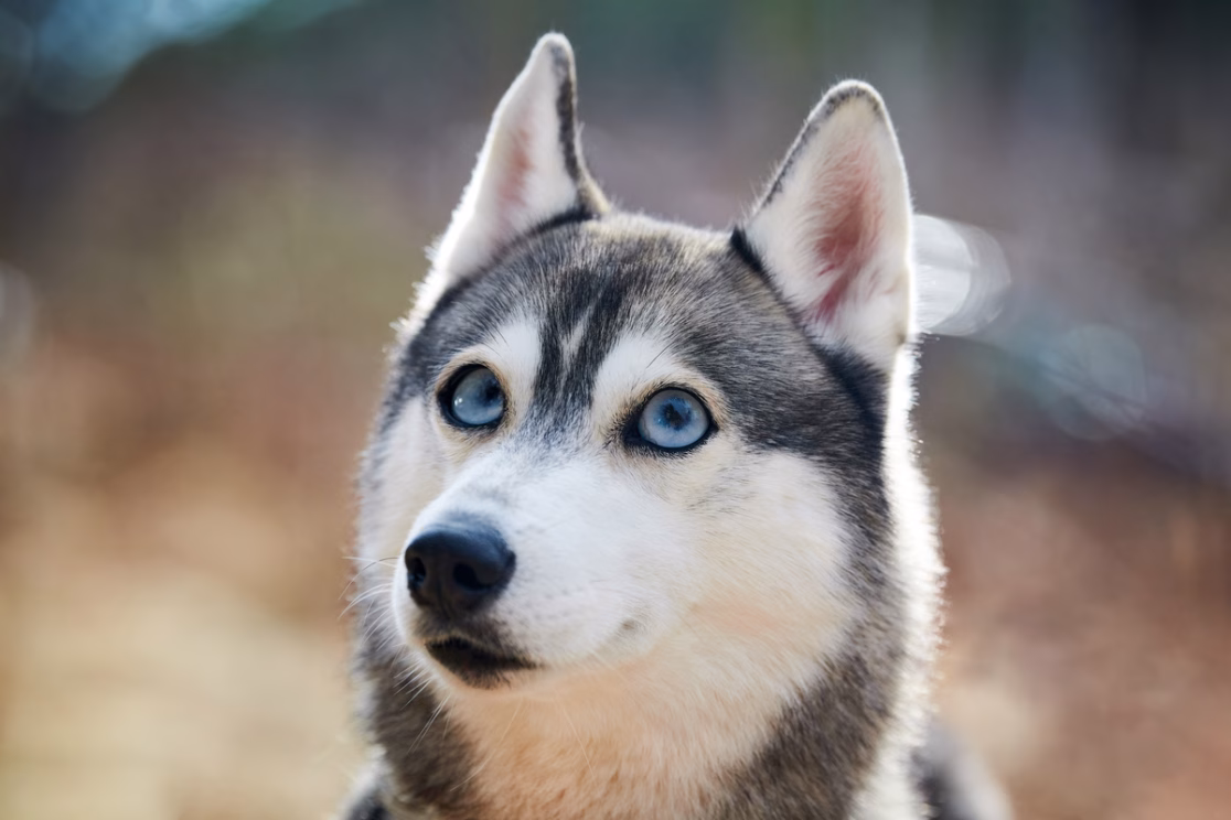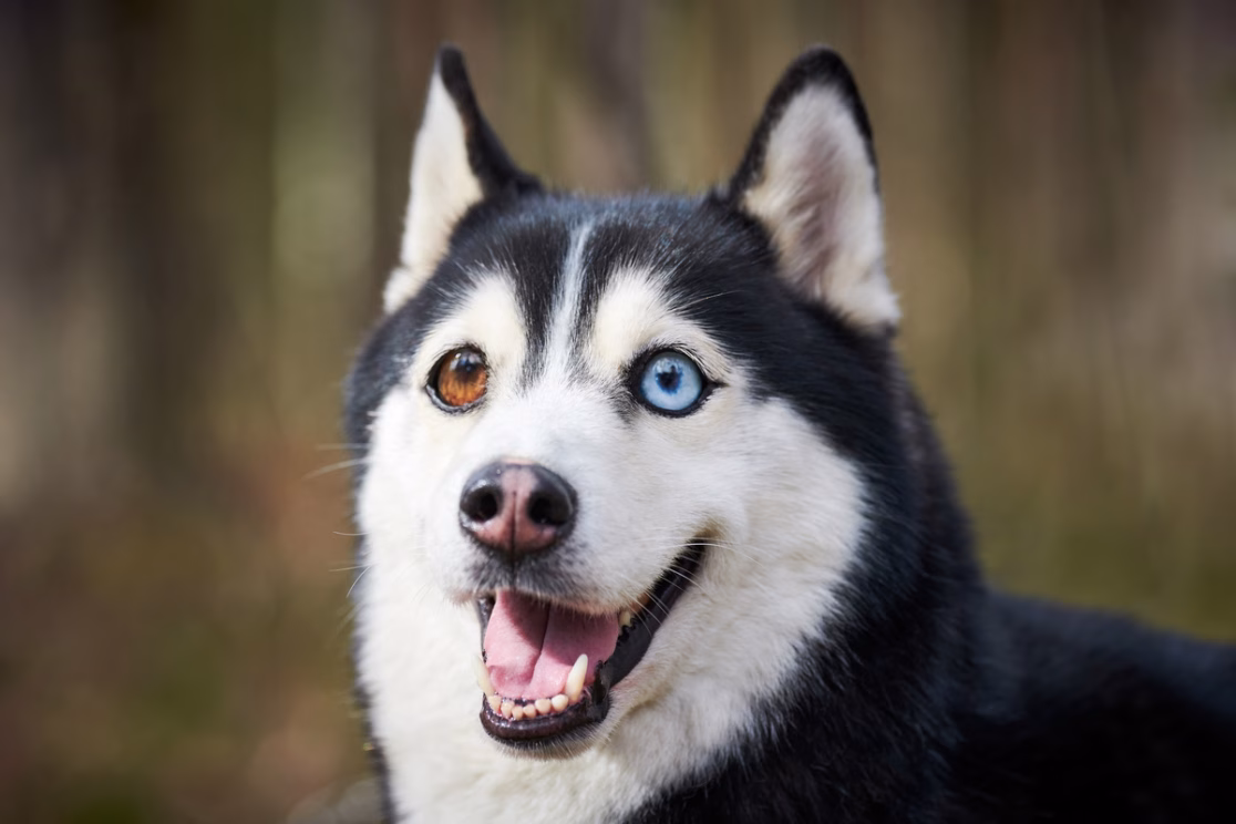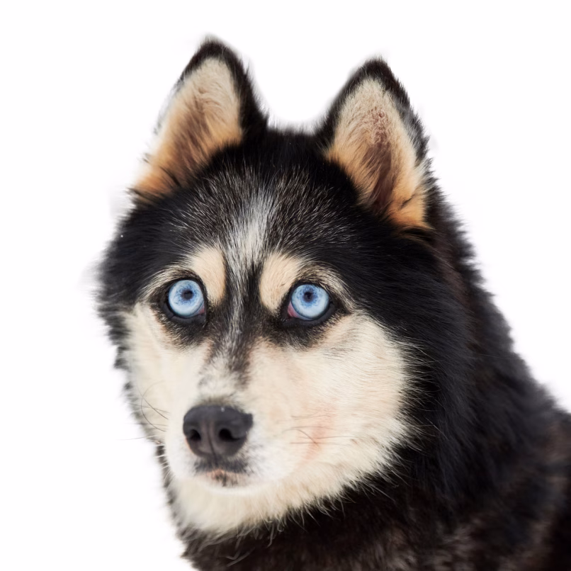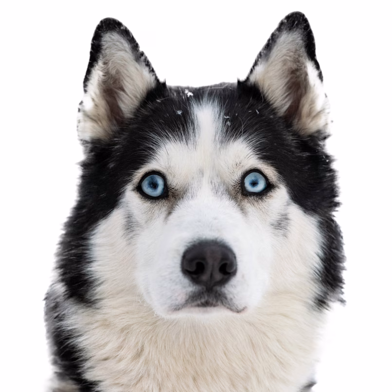 Adorable close-ups of Siberian huskies with exaggerated, big eyes. These playful edits highlight the dogs expressive faces, making them even more charming and cartoon-anime-like.