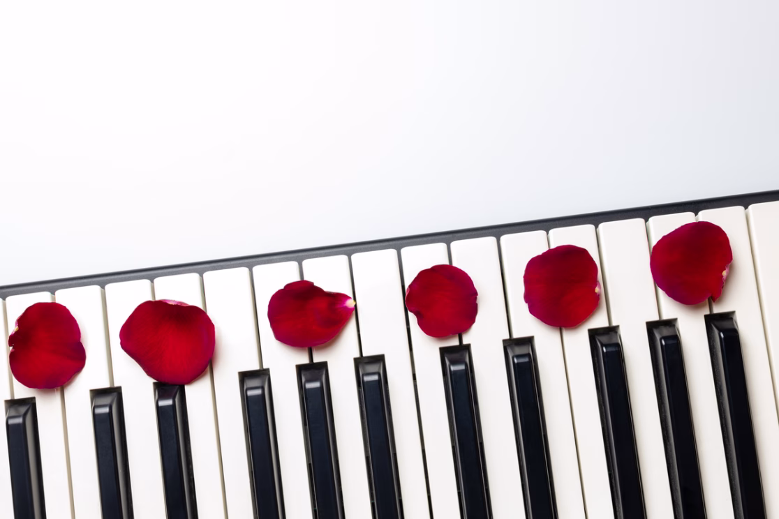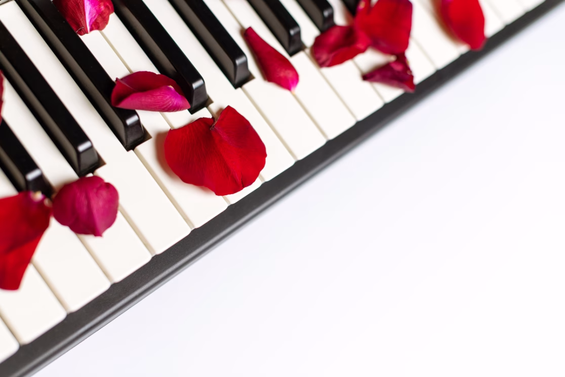 A dreamy visual series celebrating the romance of piano music — rose petals scattered over the black and white keys of a synthesizer. This personal tribute captures the elegance, nostalgia, and emotional pull of the instrument I’ve always dreamed of mastering.
