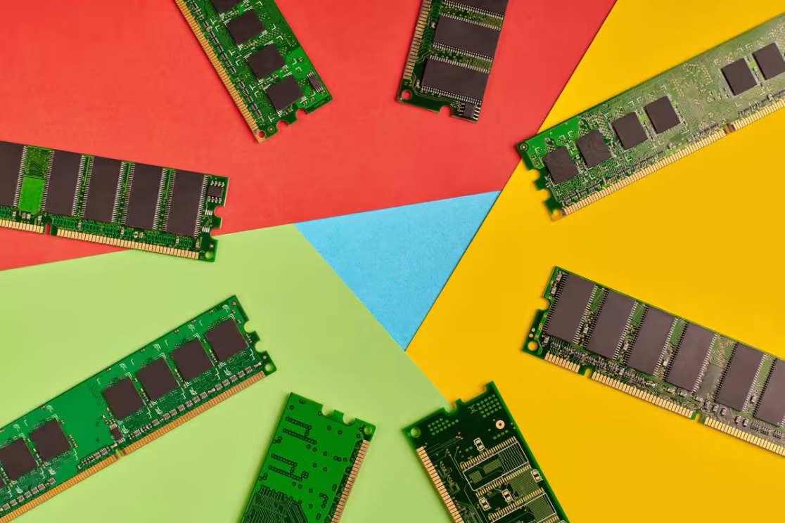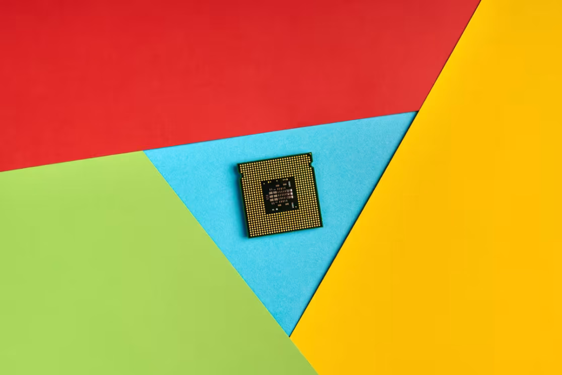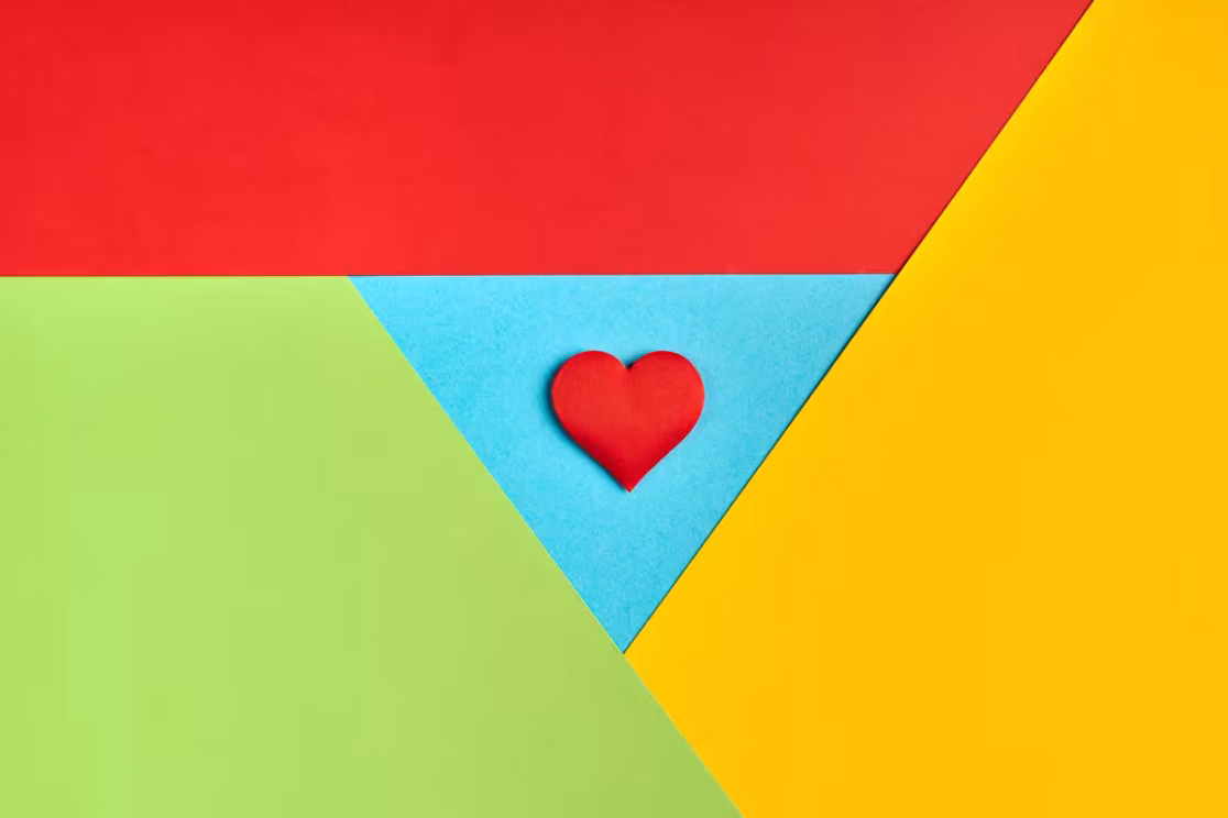 Paper variations of the popular Google Chrome browser logo made of colored cardboard.
