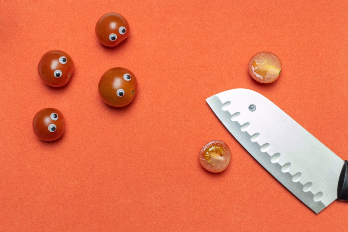 A humorous and conceptual series portraying “violence” against vegetables — twisted, smashed, pierced, or dramatically posed. It’s playful, darkly funny, and a little absurd. A creative take on still life with a taste of visual irony.