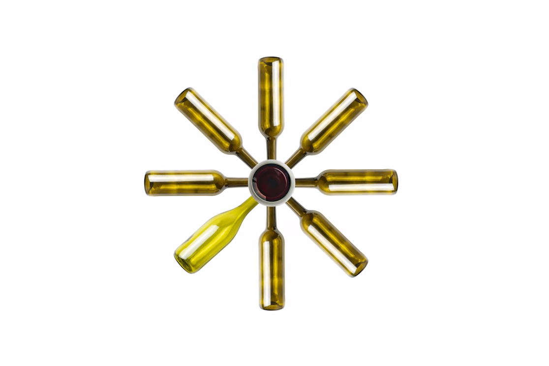 A study in composition and color, featuring wine bottles arranged in various positions and lighting setups. These frames explore symmetry, contrast, and the elegance of glass and form, turning everyday objects into visual statements. Isolated white background.