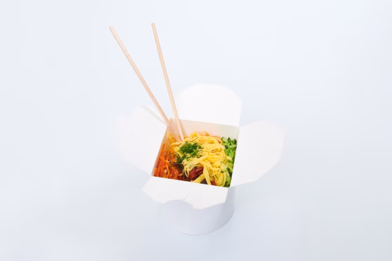 Wok & Rolls is a delicious photo series featuring Asian-inspired fast food — vibrant sushi rolls and savory wok noodles, all captured against a clean white background. The minimal setup highlights the rich textures and colors of the dishes, celebrating the visual appeal of modern takeaway cuisine.