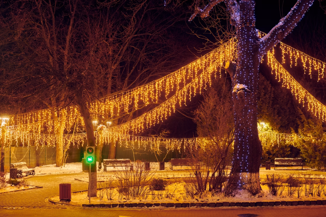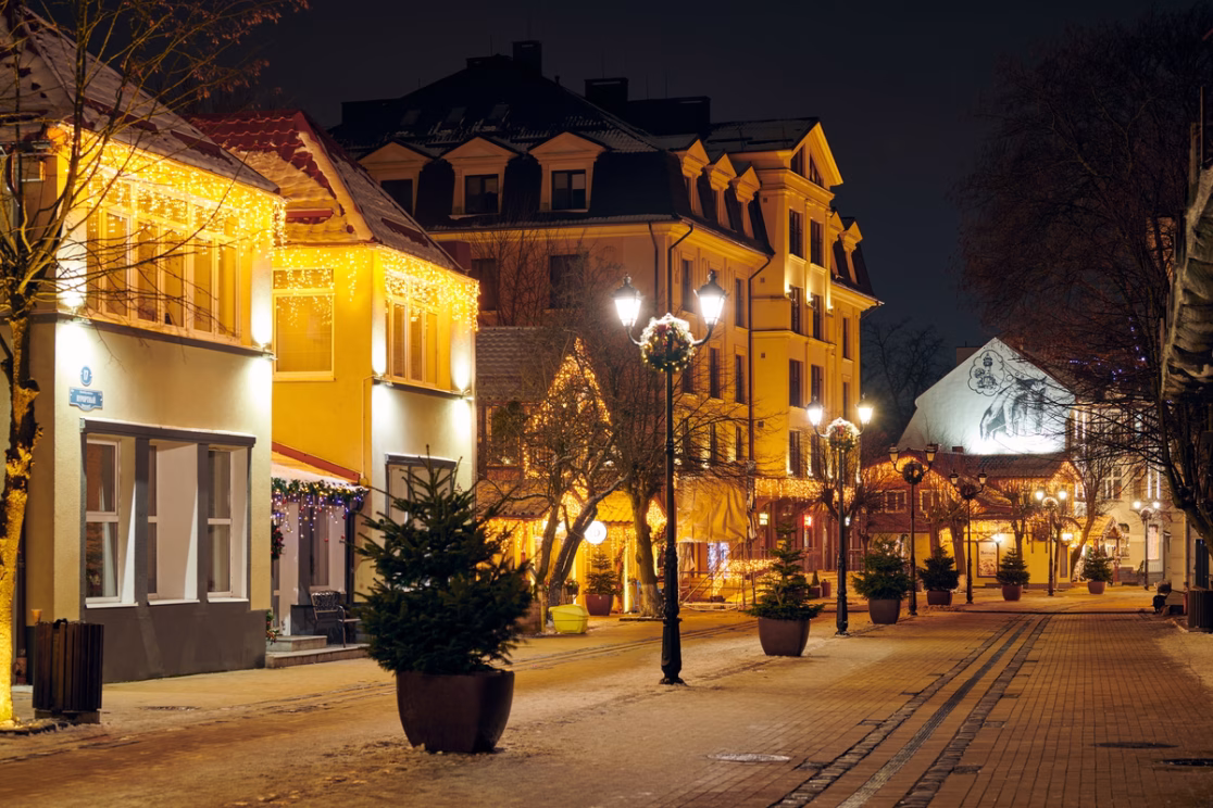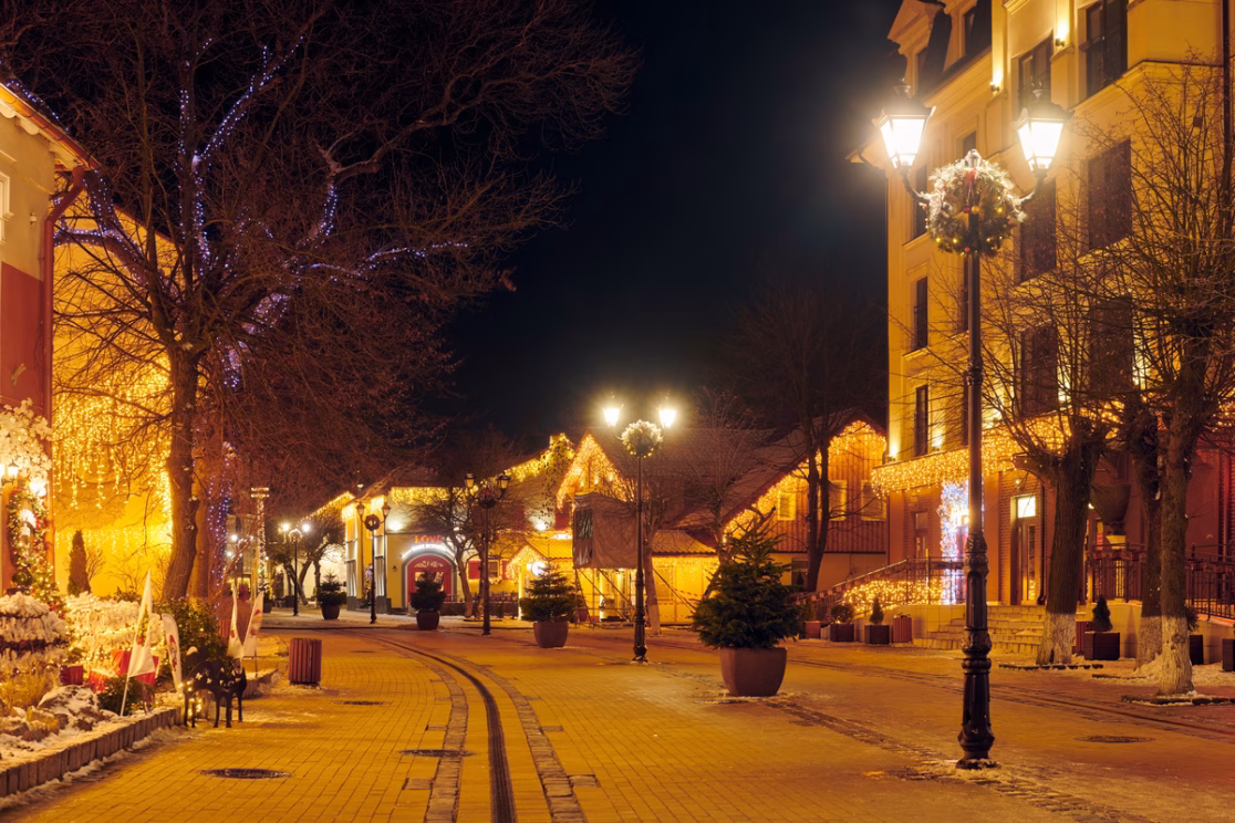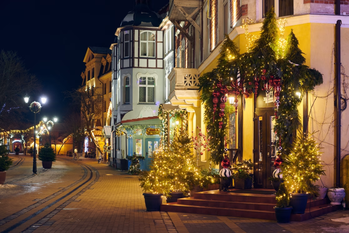 A post-New Year night walk through the enchanting streets of Zelenogradsk. The festive vibe still lingers, with glowing lights and a quiet charm. The walk ends at the pier, where the sea meets the holiday calm.
